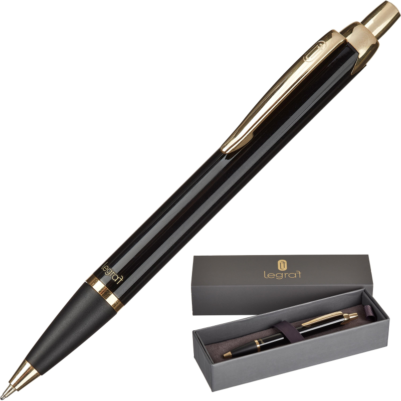 Шариковая ручка Legraf Rouan с кнопочным механизмом выполнена из латуни. Корпус имеет глянцевое черное покрытие и детали золотистого цвета. Ручка поставляется в престижной подарочной коробке. Толщина линии письма 0.5 мм. Цвет чернил - синий.