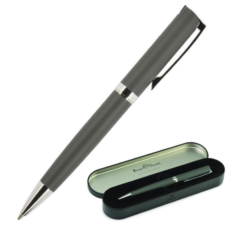 Ручка шариковая автоматическая Bruno Visconti Milano. Простой и надежный пишущий механизм выполнен из высококачественных материалов. Вид механизма: поворотный. Корпус серого цвета выполенен из металла, у корпуса матовое нескользящее покрытие для удобства письма. Толстый наконечник стержня обеспечивает легкость и аккуратность почерка. Цвет чернил: синий. Толщина линии письма: 1 мм. Элегантная ручка, упакованная в стильный металлический футляр. Размер футляра (ДxШxВ): 178x45x20 мм.