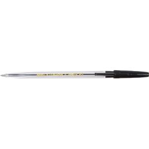Ручка шариковая черная PIONEER 0,5 мм в прозрачном пластиковом корпусе с колпачком в цвет чернил.