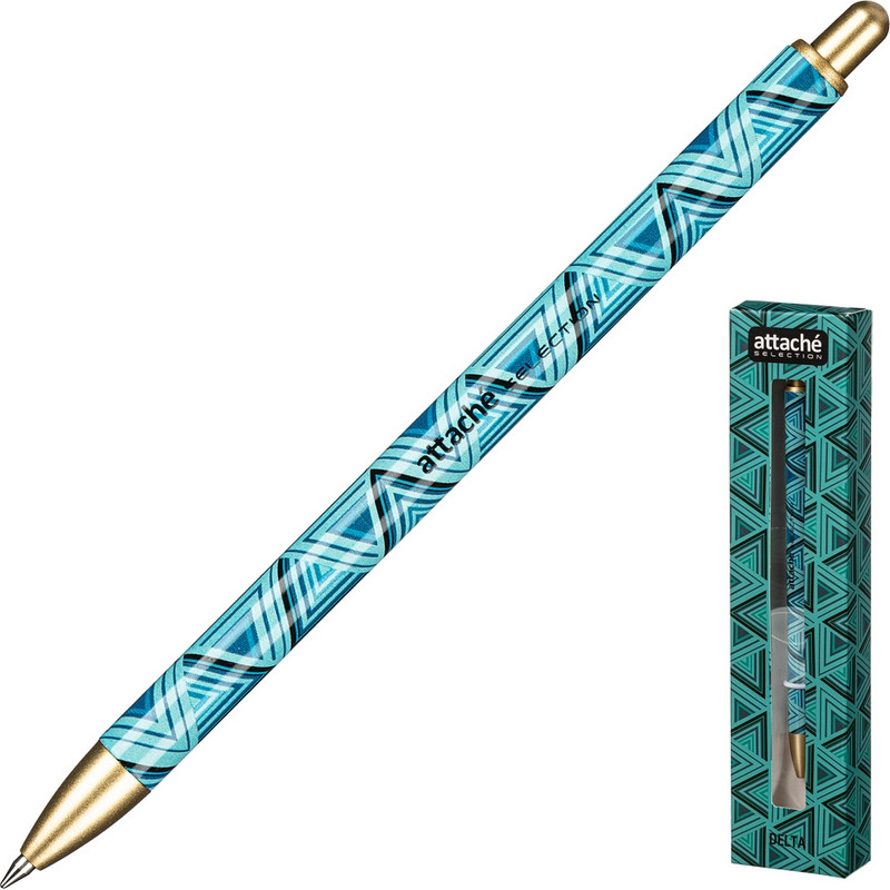 Ручка шариковая автоматическая Attache Selection Delta выполнена из прочного пластика. Корпус имеет стильный, оригинальный дизайн с геометрическим орнаментом. Ручка поставляется в подарочной коробке. Толщина линии письма 0,5 мм. Цвет чернил - синий. Размер футляра (ДхШхВ): 180х40х20 мм. Футляр выполнен из картона с стильным, оригинальным дизайном с геометрическим орнаментом в цвет корпуса ручки.