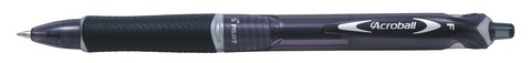 Автоматическая шариковая ручка PILOT Acroball имеет корпус из пластика и резиновую манжетку для предотвращения усталости руки. При изготовлении стержня использованы специальные чернила черного цвета, которые обеспечивают точное и мягкое письмо, сравнимое с гелевыми ручками.