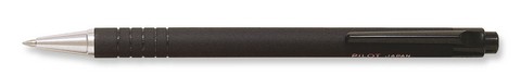 Металлический наконечник автоматической шариковой ручки Pilot, корпус которой выполнен из прорезиненного пластика черного цвета, позволяет наносить линии толщиной 0,32 мм. Поставляется со стержнем с синей пастой на масляной основе.