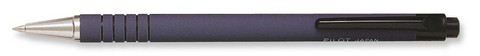 Металлический наконечник автоматической шариковой ручки Pilot, корпус которой выполнен из прорезиненного пластика синего цвета, позволяет наносить линии толщиной 0,32 мм. Поставляется со стержнем с синей пастой на масляной основе.