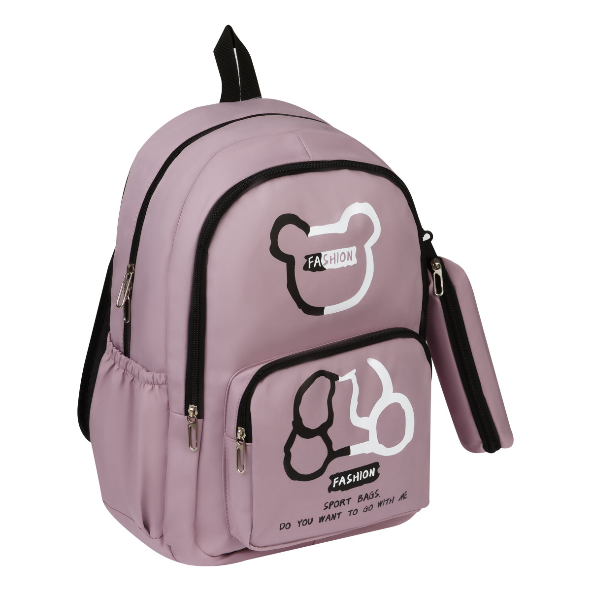 Комплект из рюкзака и пенала в нежно-розовом цвете подходит для прогулок и отдыха, учебы и шоппинга.