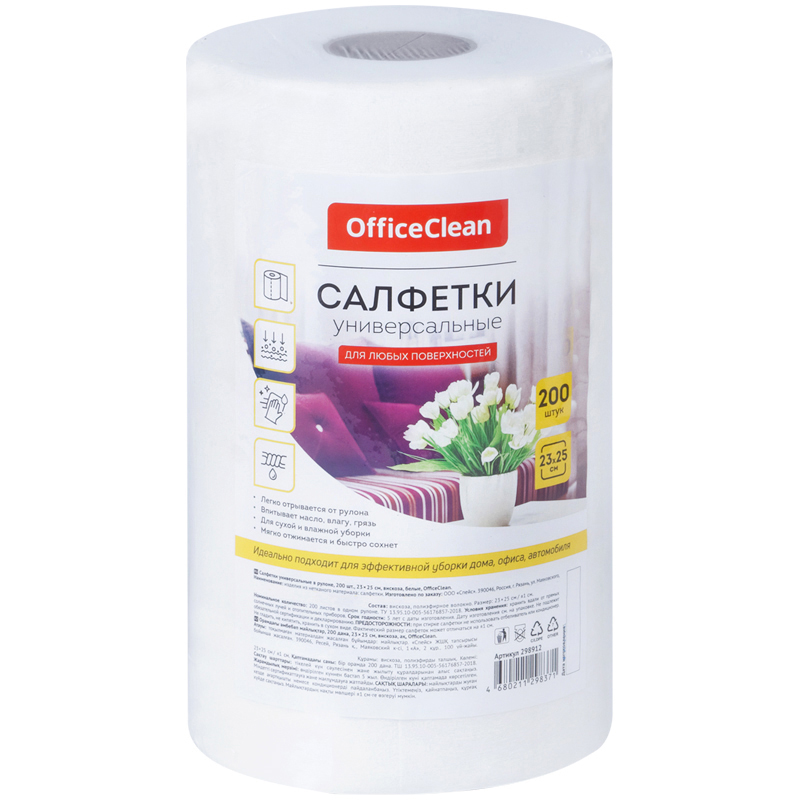 Салфетки универсальные OfficeClean в рулоне, для любых поверхностей, для сухой и влажной уборки, легко отрывается от рулона, мягко отжимается и быстро сохнет, впитывает масло, влагу, грязь. Легко стираются, долговечны в использовании.