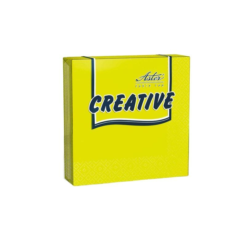 Салфетки бумажные Aster Creative 24x24 см желтые 3-слойные 20 штук в упаковке. Бумажные салфетки Aster Creative с тиснением, изготовленные из высококачественной целлюлозы, желтого цвета. Мягкая трехслойная структура, обладающая высокими поглощающими свойствами, не раздражает кожу. Благодаря яркому дизайну салфетки подходят для праздничной сервировки стола - однотонная расцветка гармонично сочетается с любой скатертью и набором посуды. Поставляются в полиэтиленовой упаковке по 20 шт. Размеры развернутой салфетки: 24x24 см.