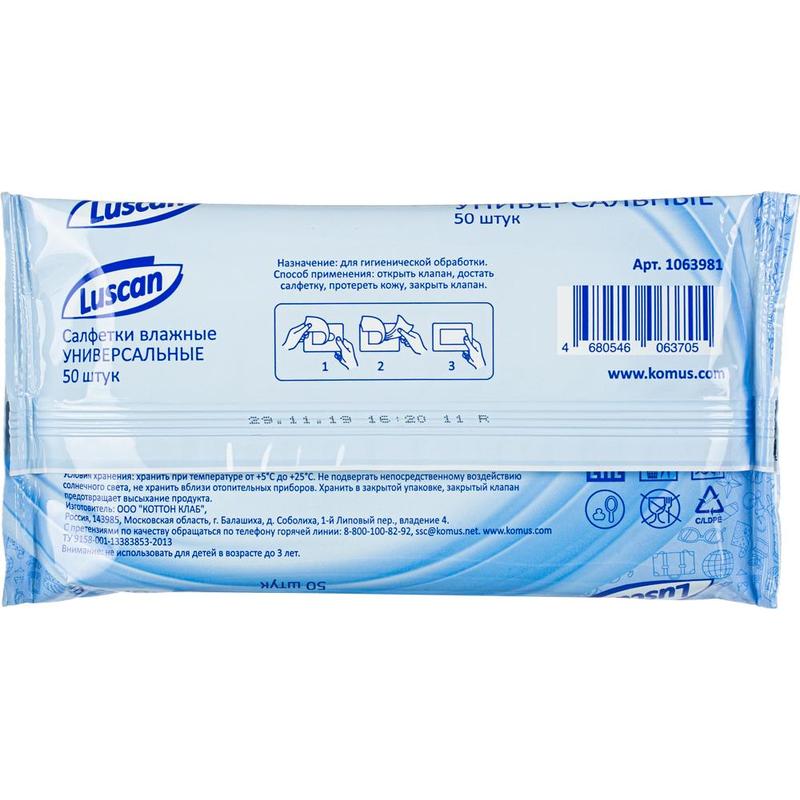 Салфетки влажные универсальные Luscan. Эффективно очищают, благоприятно воздействуют на кожу не пересушивая ее. PH-нейтральный. Не содержат этиловый спирт. Незаменимы в офисе, в дороге и на отдыхе. Состав: нетканое полотно спанлейс (плотность 35 г/кв. м.). Размер салфетки: 170×130 мм.
