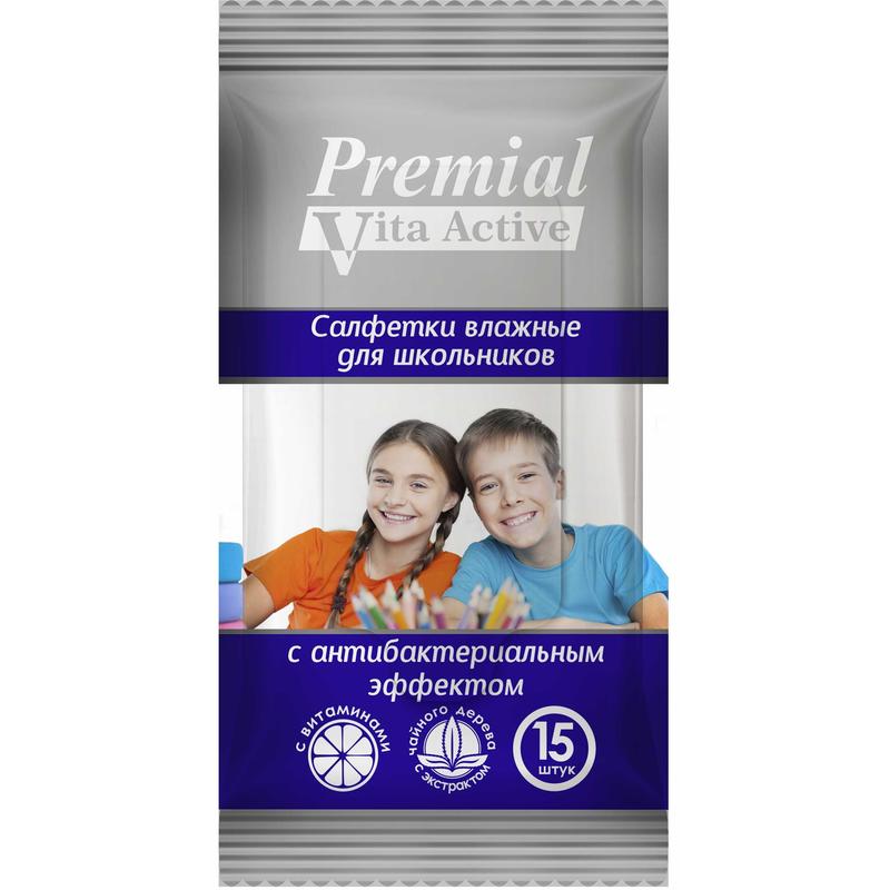 Салфетки очищ. влажные "Premial" антибактериальные д/школьников 15 шт/уп.