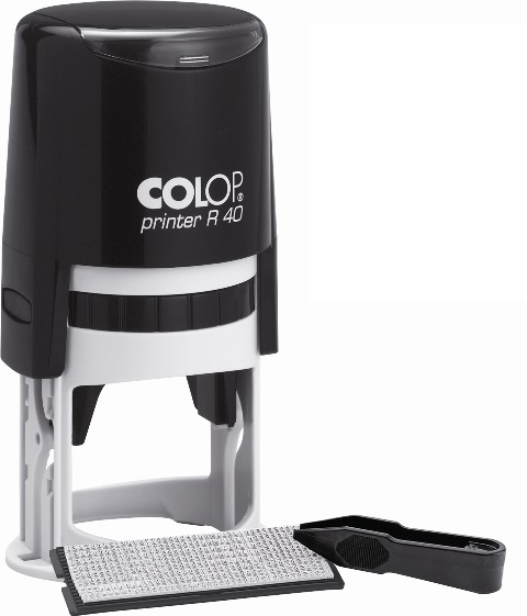Самонаборная печать 1.5-круга Colop Printer R 40-SET. Радиус оттиска 40мм. Максимальное количество знаков в строке, основного шрифта:53, шрифта для выделения текста: 37. В комплекте касса букв, сменная подушка Е/R40, пинцет. Производство фирмы «COLOP» Австрия.