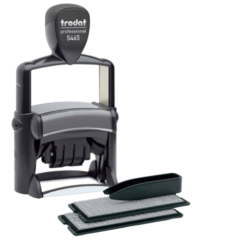 Датер самонаборный автоматический 4-х строчный, с ленточный механизмом, помещенным в надежный металлический корпус со встроенной сменной подушечкой, а так же с рифленой текстовой площадкой.
