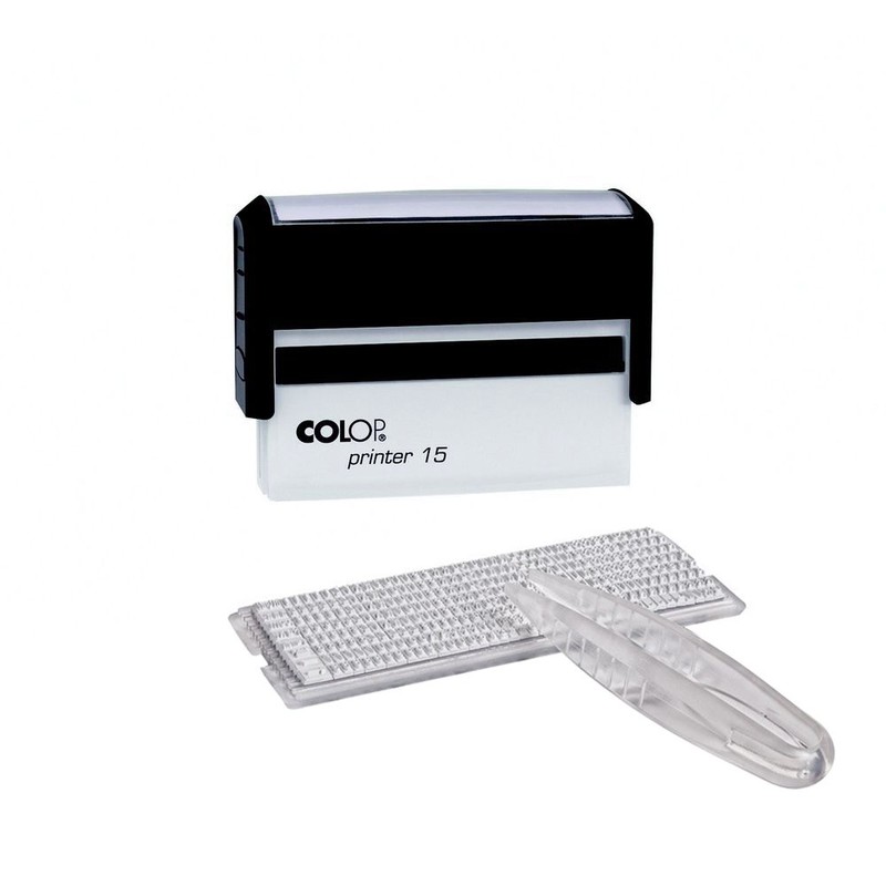 Самонаборный штамп Colop Printer 15-Set с прочным корпусом из пластика предназначен для экспресс-набора прямоугольных штампов. Две строки текста по 43 (основной шрифт) или 30 (большой шрифт) знаков. В комплект входит касса букв, пинцет для набора, сменная штемпельная подушка с синими чернилами. Окрашивание происходит автоматически — подушка вставляется в корпус.