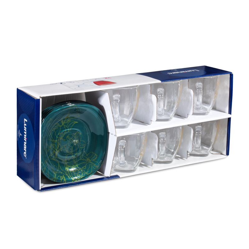 Чайный набор Luminarc Annalee Green на 6 персон. В комплекте 12 предметов: 6 чашек, 6 блюдец. Чашка: объем 220 мл, высота 8,5 см. Блюдце: 14 см. Материал: ударопрочное стекло. Подходит для использования в посудомоечной машине, для использования в СВЧ. Упаковка: картонная коробка. Страна производства: ОАЭ.
