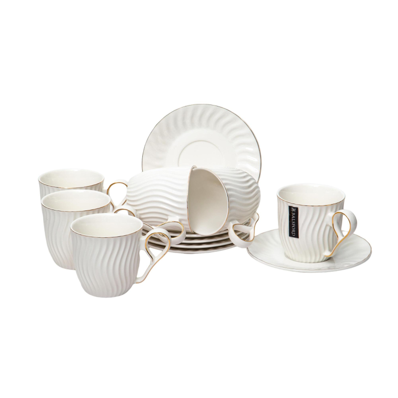 Сервиз чайный Basford Грация (101-01058) на 6 персон (12 предметов) выполнен из высококачественного костяного фарфора - материала, безопасного для здоровья и надолго сохраняющего тепло напитка. В комплекте 6 чашек, 6 блюдец. Несмотря на свою внешнюю хрупкость, каждый из предметов набора обладает высокой прочностью и надежностью. Изделия украшены тонкой золотой каймой. Оригинальный дизайн сделает этот набор изысканным украшением любого стола. Набор упакован в подарочную коробку. Объем чашки: 240 мл. Диаметр чашки: 8 см. Высота чашки: 7,5 см. Диаметр блюдца: 15 см. Возможность мытья в посудомоечной машине: да. Возможность использования в СВЧ-печи: нет.