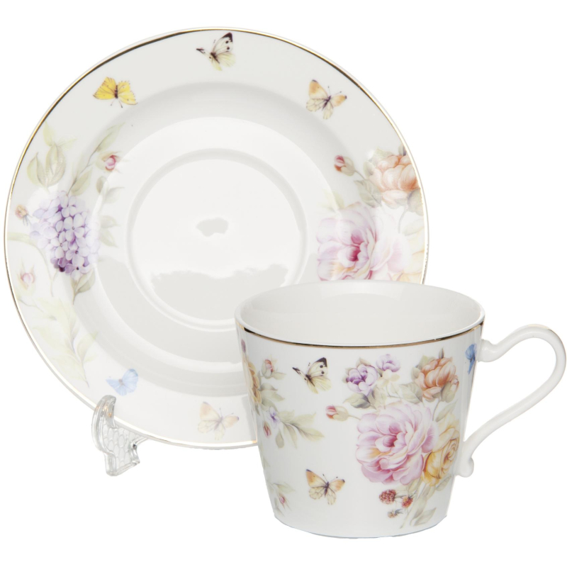Набор чайный Kingray на 2 персоны фарфор (4 предмета), выполнен из высококачественного фарфора. В комплекте 2 чашки, 2 блюдца с рисунком цветы. Несмотря на свою внешнюю хрупкость, каждый из предметов набора обладает высокой прочностью и надежностью. Оригинальный дизайн сделает этот набор изысканным украшением любого стола. Набор упакован в подарочную коробку. Объем чашки: 250 мл. Диаметр чашки: 8,8 см. Высота чашки: 7,5 см. Диаметр блюдца: 11 см. Возможность мытья в посудомоечной машине: нет. Возможность использования в СВЧ-печи: нет.