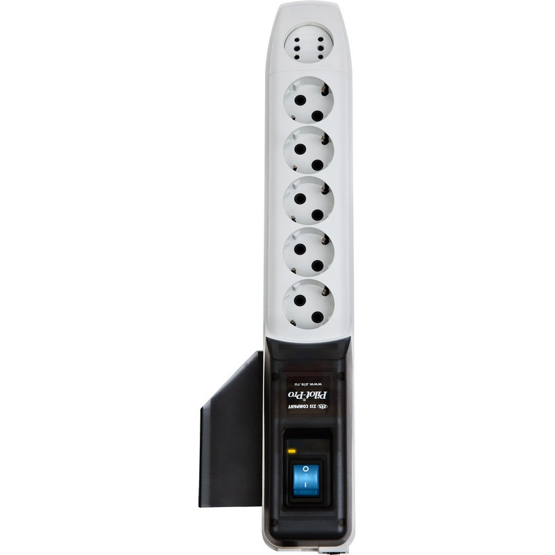 Корпус сетевого фильтра Pilot Pro имеет пять розеток с заземляющим контактом и одну розетку стандарта GP знак регистрации (GADGET PARKING), которая позволяет подключать либо одну круглую, либо две плоские вилки одновременно. Для удобства укладки шнуров служит специальный съемный элемент. Длина провода 10 метров. Специальная диагностическая схема сетевого фильтра Pilot Pro позволяет определять наличие заземления на контактах розеток изделия и оптимальную фазировку вилки. Контактные шины сетевого фильтра Pilot Pro выполнены из высококачественного металла, что обеспечивает надежный и плотный контакт вилки в розетках изделия. Сетевой фильтр Pilot Pro отвечает всем современным требованиям российских стандартов в области электромагнитной совместимости и безопасности.