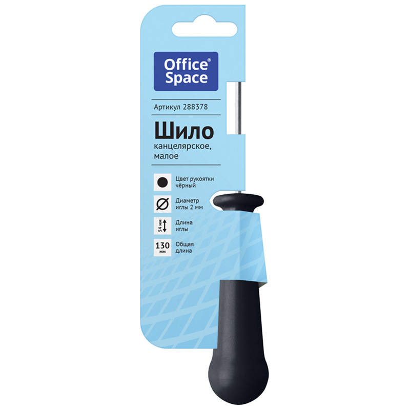 Малое канцелярское шило используется для прошивки документов и прокалывания бумаги. Цвет пластиковой рукоятки - черный. Диаметр шила 2 мм, длиной 54 мм, общая длина шила 130 мм. Имеет никелевое покрытие. Изделие может обеспечить прокалывание до 30 листов бумаги за один прокол.