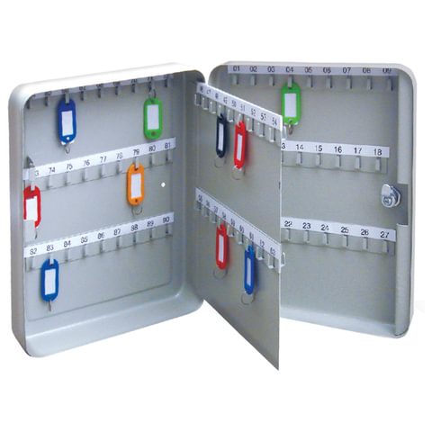 Изготовлен из прочной стали толщиной 0,8 мм и оснащен надёжным замком. Для размещения каждого ключа в шкафчике предусмотрен брелок, что очень удобно. Шкафчик великолепно впишется в интерьер любого офиса.