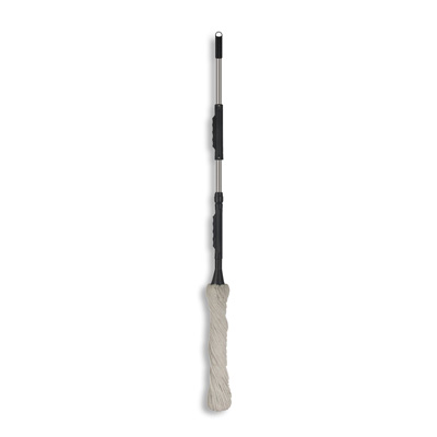 Швабра с хлопчатобумажной веревочной насадкой отжимается однократным вращательным движением, позволяет не пачкать руки и сократить время уборки. Хлопчатобумажная насадка впитывает большое количество воды, хорошо удерживает грязь, легко очищается, долговечна. Насадка не является сменной. Швабра имеет металлическую ручку длиной 135 см с пластиковой насадкой для предотвращения скольжения рук.