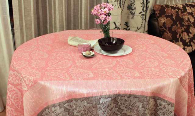 Скатерть 1,5х1,8 Василиса Папоротник коралл п/лен жакк. пестр 1х725/26