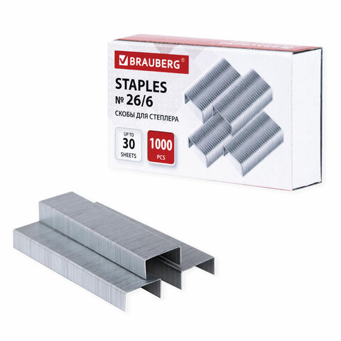 Скобы №26/6 "Brauberg" оцинкованные 1000шт/уп. арт.225973