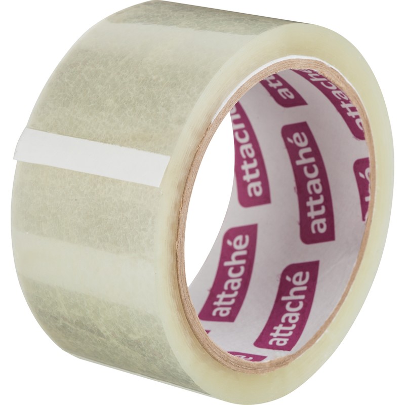 Широкая клейкая лента Attache изготовлена на основе прозрачного полипропилена толщиной 40 мкм. Отличается высокой адгезией клея (слипанием с поверхностью), стойкостью к разрыву. Ширина ленты — 48 мм, общая длина рулона — 60 м, диаметр втулки — 76 мм. Широкая клейкая лента удобна для упаковки объемных и тяжеловесных грузов, не теряет свойств на открытом воздухе при температуре от 10 до 30 градусов Цельсия. В упаковке 6 лент, в коробе 6 упаковок (36 штук).
