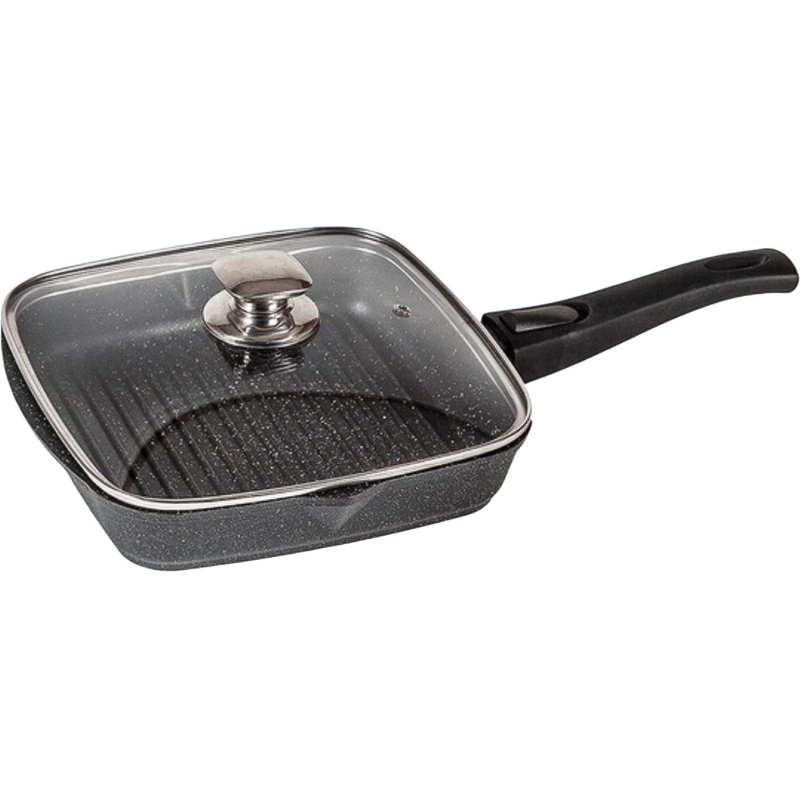 Сковорода-гриль 26x26 см со съемной ручкой и стеклянной крышкой идеально подойдет для приверженцев здорового питания, позволит готовить с минимальным количеством масла. Сковороды-гриль пользуются огромной популярностью у профессиональных поваров так как ее использование придает блюдам особенный оттенок вкуса. Главный признак такой сковороды - ребристое дно. Продукты жарятся на этих ребрах как на решетке, только без открытого огня. Во время приготовления сок и жир от продуктов не пригорает к их поверхности, а стекает в канавки между ребрами на дне и уже оттуда испаряется. Мясо, рыба, овощи, котлеты получаются сочными, но не жирными, как после настоящего гриля. Сковорода-гриль поставляется со съемной ручкой и стеклянной крышкой, идеально прилегающей к стенкам гриля. Крышка позволяет существенно расширить возможности хозяйки при приготовлении пищи, а съемная ручка обеспечивает более компактное хранение гриля.
