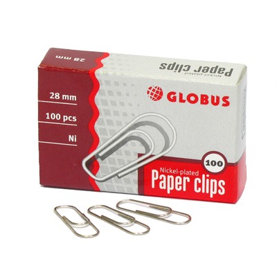Скрепки 28 мм. "Globus" никелированные 100 шт/уп. арт.С28-100Н
