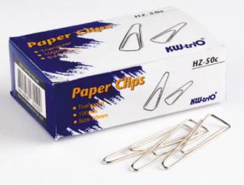 Скрепки 50 мм. "KW-Trio" оцинкованные треугольные 100шт/уп. арт.HZ-50с