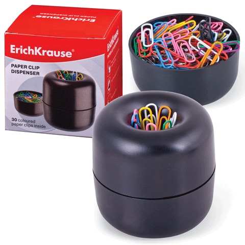 Скрепочница магнитная "ERICH KRAUSE" Бочонок 30 скрепок,черная арт.605