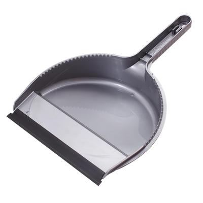 Совок для мусора с резиновой кромкой изготовлен из пластика. Цвет серый. Размеры совка — 35,5×23×7 см.