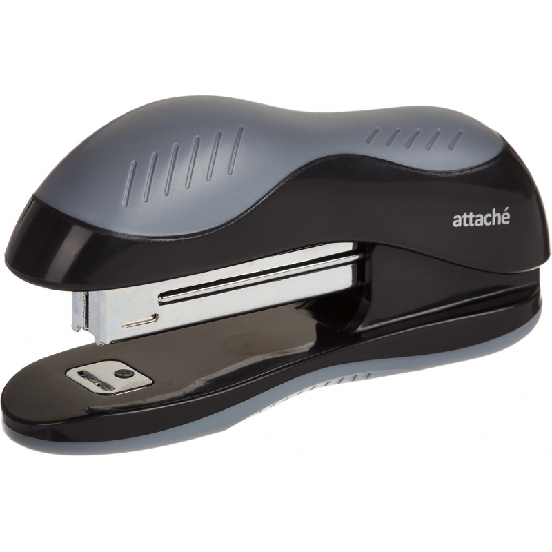 Степлер Attache leader для работы с документами в офисе и дома. Настольный степлер выполнен в пластиковом корпусе черного цвета с противоскользящей прорезиненной вставкой серого цвета. Рабочие компоненты изготовлены из высококачественной стали. Степлер Attache leader одновременно сшивает до 15 листов бумаги плотностью до 80 г/кв.м. Степлер скрепляет бумагу закрытым типом сшивания, при котором ножки скобы загибаются внутрь. Это дает возможность надежно хранить сшитые документы на протяжении длительного времени. Модель оснащена антистеплером. Степлер совместим со скобами № 10. Глубина закладки бумаги - 50 мм (5 см). Вместимость лотка для скоб: 50 скоб размером № 10. Размер изделия: 115x60x38 мм.