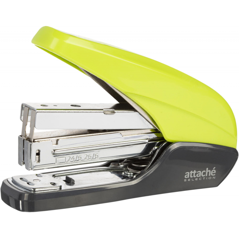 Степлер Attache Selection Forest GB2524 предназначен для надежного и качественного скрепления документов в офисе и дома с меньшими усилиями. Настольный степлер выполнен в пластиковом корпусе салатового цвета. Степлер одновременно сшивает до 25 листов бумаги плотностью до 80 г/кв.м. Позволяет производить сшивание открытым и закрытым способом. Степлер совместим со скобами № 24/6 и 26/6. Глубина закладки бумаги - 50 мм (5 см). Вместимость лотка для скоб: 80 скоб размером № 24/6. Размер изделия: 93x31,5x60,5 мм. Благодаря технологии Less Effort при сшивании прилагается до 60% меньше усилий. Компактный размер удобен в использовании и занимает мало места на рабочем столе.