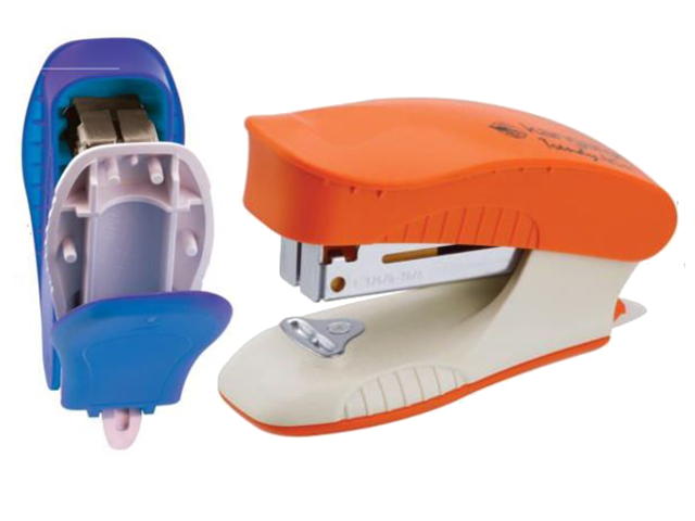 Степлер из прочного пластика, со встроенным антистеплером. Компактный размер корпуса (75мм).