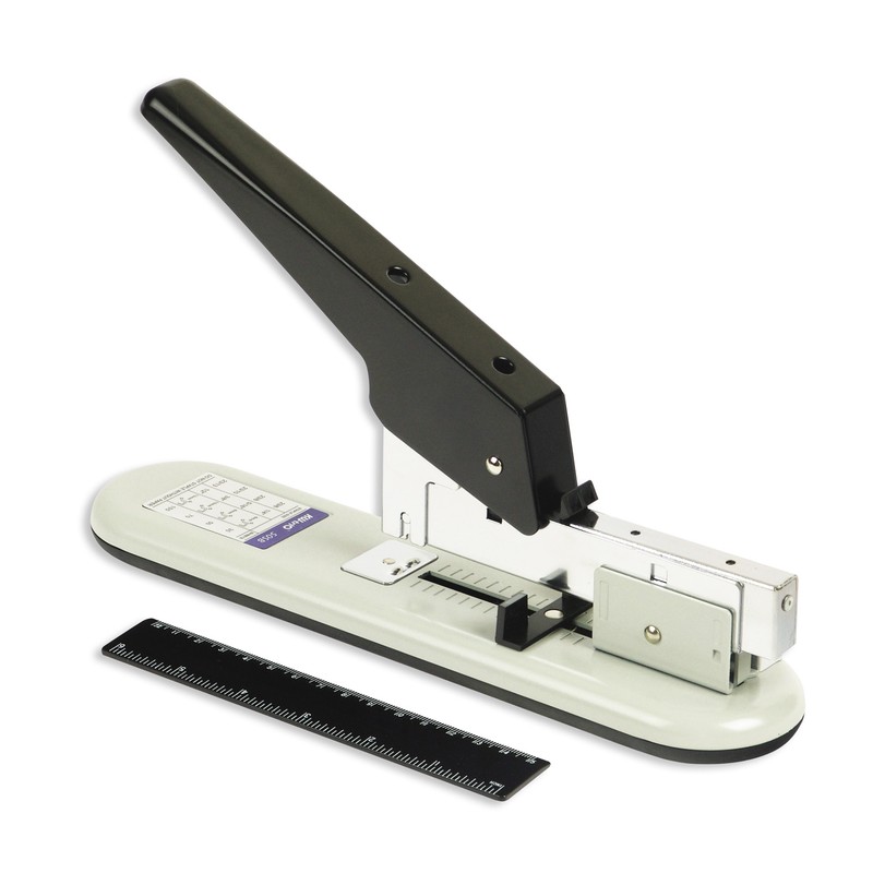 Мощный степлер KW-Trio с максимальной толщиной сшивания бумаги до 100 листов. Глубина закладки листов регулируется от 7 до 65 мм. Пластиковая основа степлера не царапает поверхность стола и предотвращает скольжение. Тип и размер используемых скоб — N23/6, 23/8, 23/10, 23/13. Загрузка скоб в степлер осуществляется фронтально.