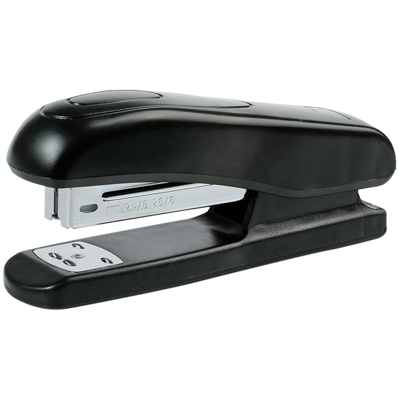 Удобный, пластиковый степлер для скоб № 24/6 и 26/6, сшивает до 25 листов, вмещает 50 скоб. Пластиковый корпус, металлический механизм, цвет корпуса - черный. Упакован в картонную коробку.