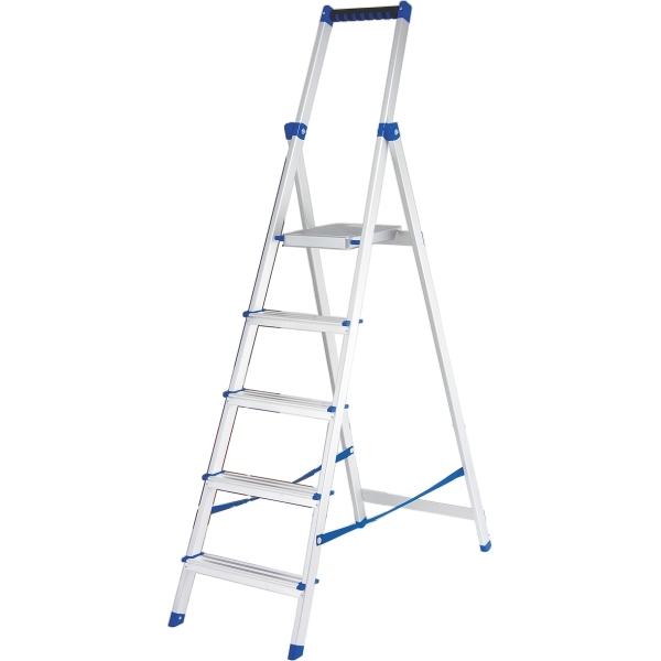 Прочная алюминиевая рама из прессованного профиля прямоугольного сечения. Широкие профилированные противоскользящие ступени. Массивная площадка с рифленой поверхностью. Имеет широкое устойчивое основание, высокую дугу безопасности, защищающую от падения. Используется в быту и строительстве. Легкая, надёжная, устойчивая. Вес 3,1 кг.Высота 177 см, ширина 30 см.