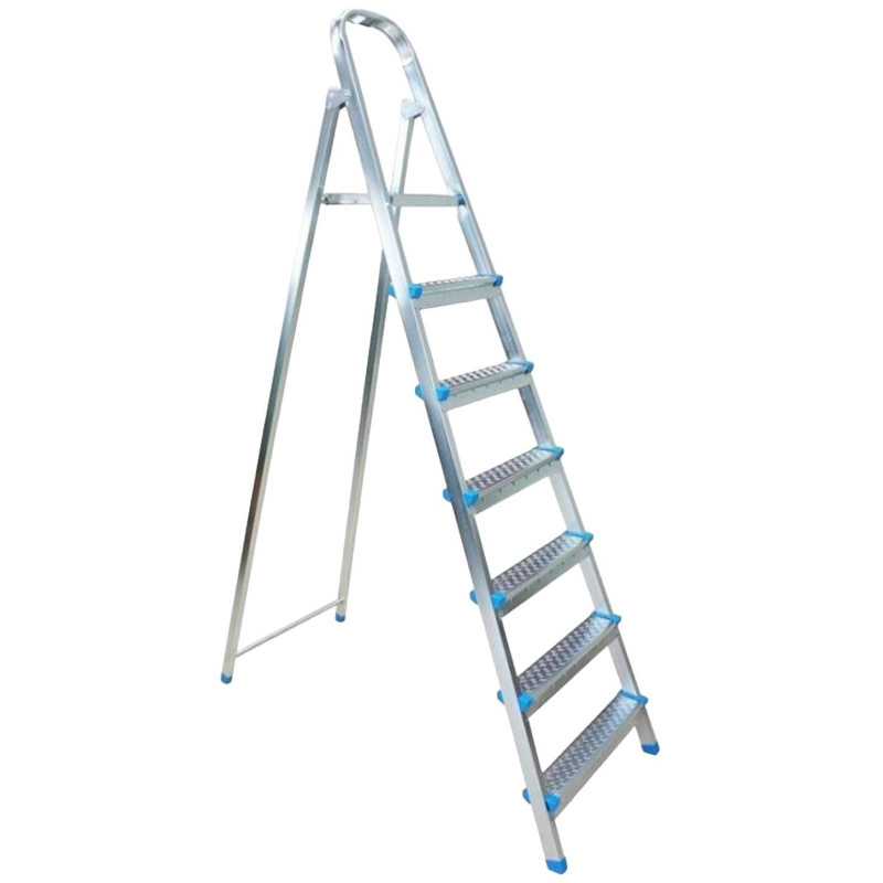 Стремянка стальная 7 ступеней Zalger 711-7. Используется для строительных, ремонтных, складских, а также прочих хозяйственных и оформительских работ. Односторонняя лестница-стремянка представляет собой конструкцию, ступени которой располагаются только с одной стороны, противоположная часть служит опорным блоком. Этот тип конструкции относится к облегченным вариантам и максимально пригоден для ручной транспортировки. Преимущества: - Прочная стальная рама, а также широкие профилированные противоскользящие ступени являются надежной основой для эксплуатации стремянки. - Массивная верхняя площадка с рифленой поверхностью, широкое устойчивое основание, высокая дуга безопасности, предусмотренные конструкцией стремянки, защищают от падений. - Заглушки на ступенях улучшают эксплуатационные характеристики стремянки, уменьшают вероятность получения травмы об острые края ступеней при переносе стремянки из одного места на другое. - Пластиковые заглушки на ножки стремянки повышают устойчивость. Заглушки не дают стойкам стремянки разъезжаться на скользкой поверхности и защищают напольное покрытие от повреждений и царапин.