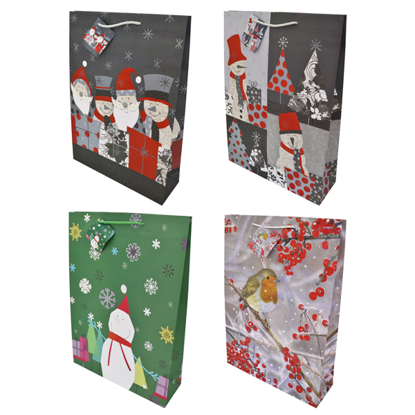Сумка бумажная ламинированная с тиснением фольгой, 330х457х102, 4 дизайна