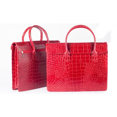 Сумка кожаная деловая женская красного цвета облегченной формы,