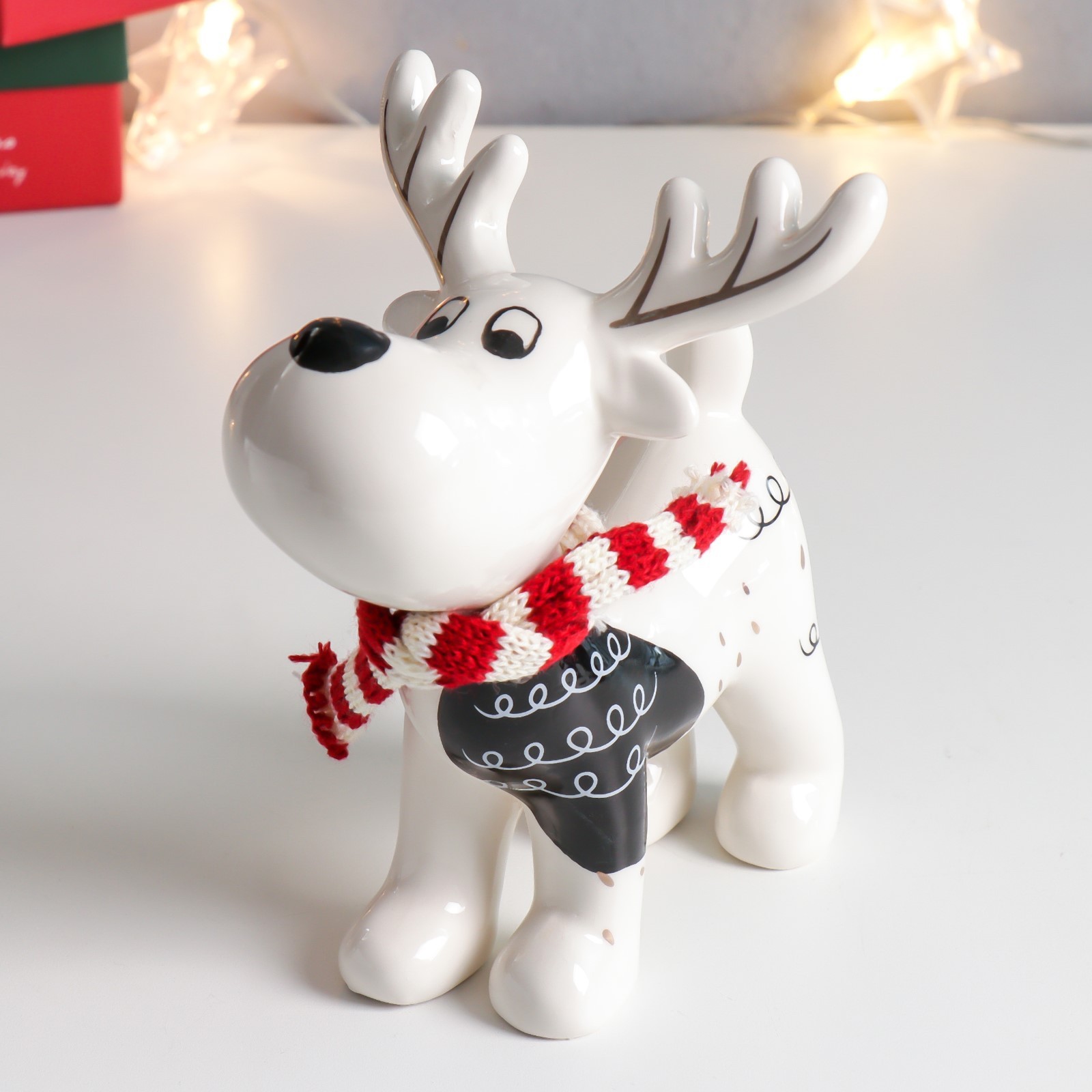 Сувенир керамика "Олешка в шарфике с сердечком на боку" белый с золотом арт.7405566