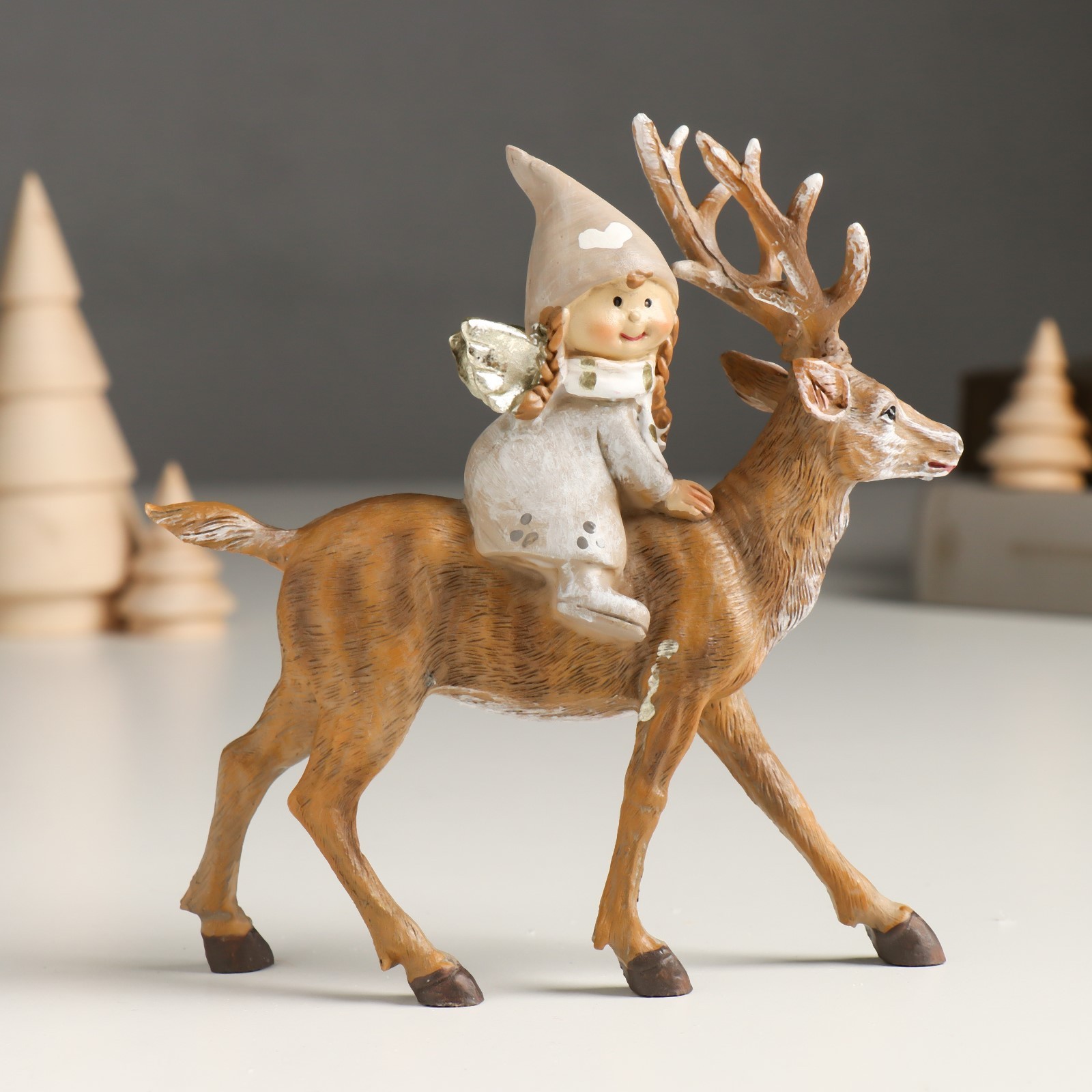 Сувенир полистоун "Малышка-ангел в сером наряде, верхом на олене"арт.9498844