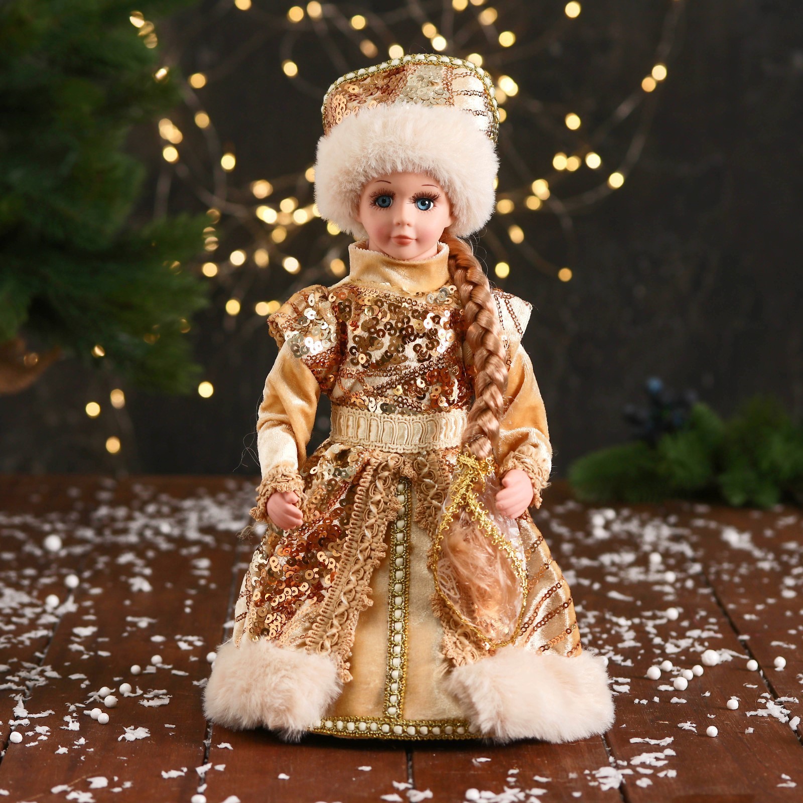 Сувенир СНЕГУРОЧКА 30см. "Платье с пайетками" золотое двигается арт.7856836