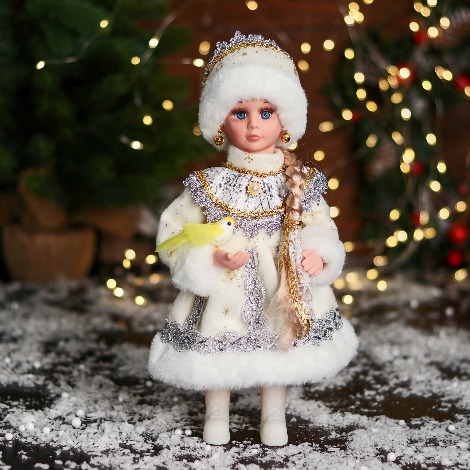 Сувенир СНЕГУРОЧКА 30см. "В шубке с кружевами и бусинкой" арт.9692209