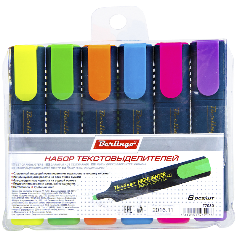 Текстовыделитель Berlingo 6 шт/набор 1-5 мм.