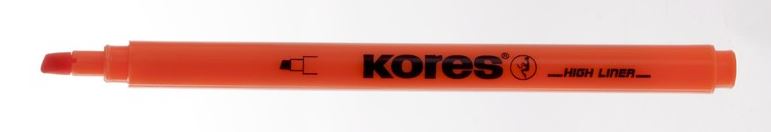 Текстовыделитель Kores в пластиковом корпусе с колпачком. Скошенный наконечник, устойчивый к высыханию, обеспечивает толщину линии письма от 0,5 до 3.5 мм. Светостойкие чернила оранжевого цвета на водной основе позволяют использовать текстовыделитель на различных типах бумаги.