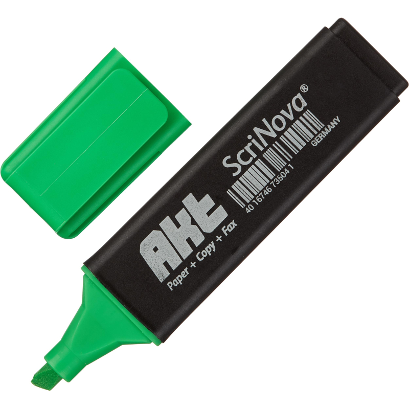 Текстовыделитель ScriNova Akt в пластиковом корпусе выполнен на водной основе, предназначенный для маркировки текста на бумаге любой плотности. Повышенный объем заправки позволяет использовать текстовыделитель дольше аналогов. Скошенный пишущий узел проводит линии разной толщины. Светоустойчивые, яркие безопасные чернила без запаха. Цвет чернил: зеленый - соответствует цвету колпачка. Скошенный наконечник имеет толщину от 1 до 5 мм.