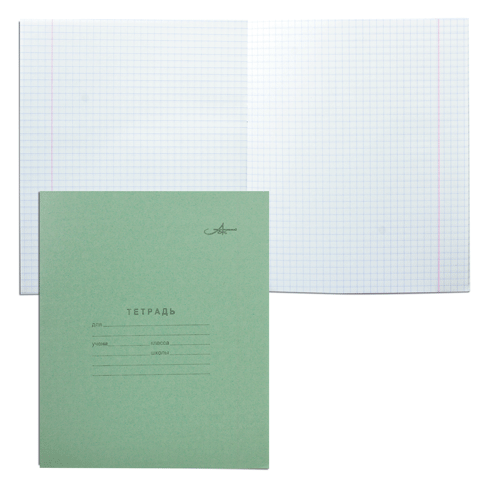Внутренний блок - офсет 60 г/м2, клетка с полями. Классическая тетрадная обложка. 12 листов. Скрепление - скрепка.