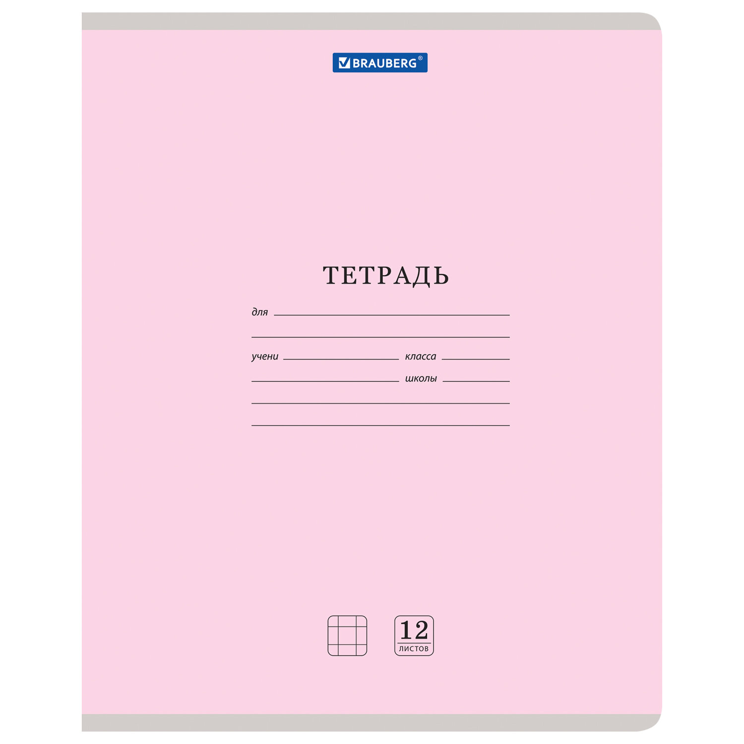Тетрадь 12 л. клетка "Brauberg" Классика New розовая арт.105685