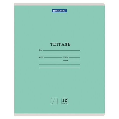Тетрадь 12 л. косая линия "Brauberg" Классика New обложка картон зеленая арт.105688