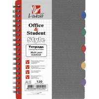 Формат: А4 Количество листов: 120. Крепление: евроспираль. Обложка: рельефная пластиковая с пальчиковой вырубкой. Количество разделителей: 5. Внутренний блок: 6 разделов. Бумага: офсет 70 г/м2. Линовка: клетка.